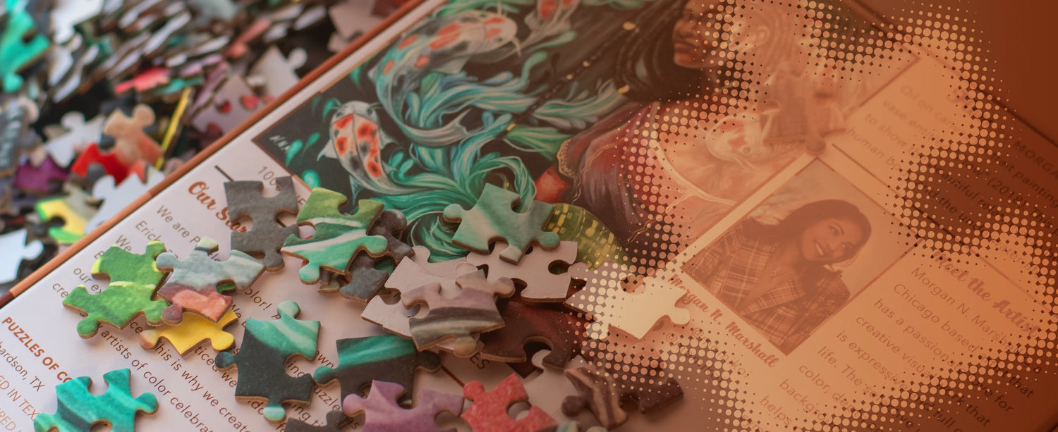 Puzzles of Color uplifts artists of color by transforming their work into puzzles that spark joy, connection, and representation in every piece.