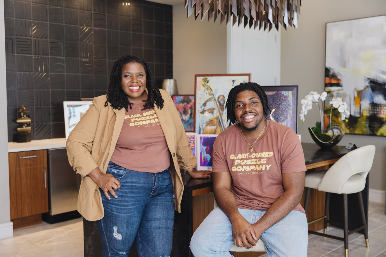 We are Puzzles of Color, a Black-owned family business run by sibling duo Ericka and William. Our love for puzzles began in elementary school, where we spent hours together, tackling challenges and working toward a shared goal. Over time, we realized that few puzzle images reflected our lives or experiences. That’s why we founded Puzzles of Color—to offer frameable art by talented artists of color, celebrating diverse experiences and creativity.