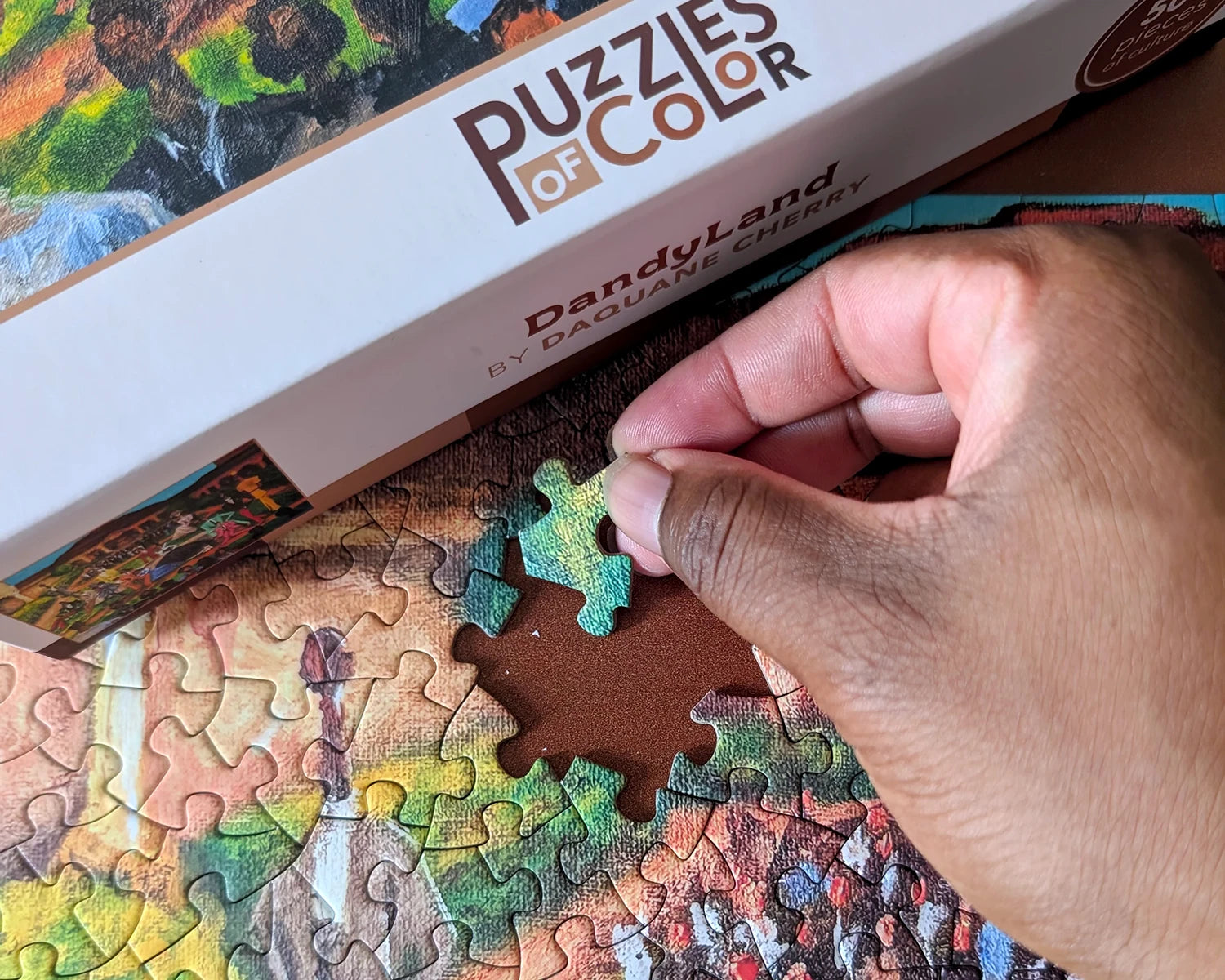 Rooted in Cherry’s exploration of emotional intellect, healing, and imagination, this piece reflects meticulous attention to personal style and cultural identity. Featuring bold color and symbolic storytelling, DandyLand invites puzzlers to honor Blackness in its most refined, playful, and powerful form.
